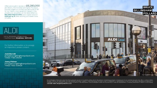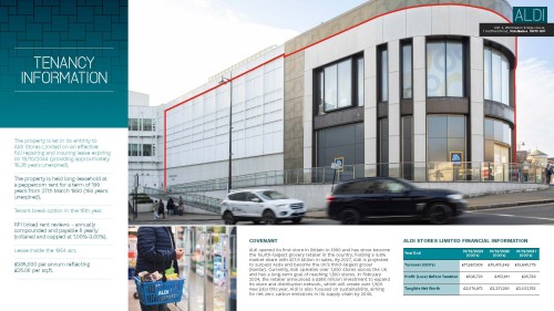 – Single-let to Aldi – on a 20 year full repairing and insuring lease, expiring on 19/10/2044 (19.4 years unexpired).